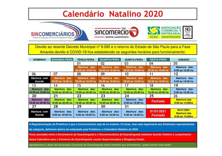 Porém, existe um calendário homologado pelos Sindicatos da Categoria SINCOMERCIÁRIOS e SIMCOMÉRCIO, que deve ser respeitado (Convenção Coletiva).